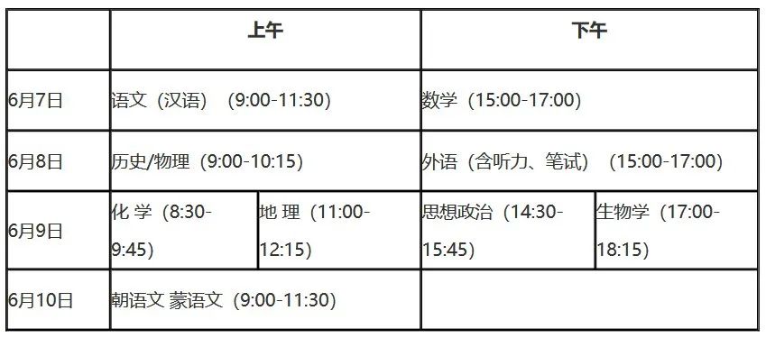 全國(guó)統考于6月(yuè)7日開(kāi)始舉行,具體科目考試時間安排為(wèi):