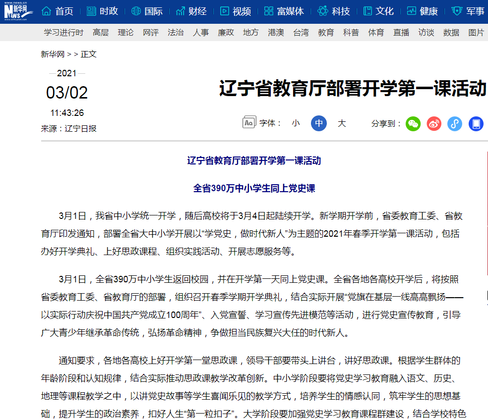 遼甯省“開(kāi)學第一(yī)課”引起社會(huì)廣泛關注