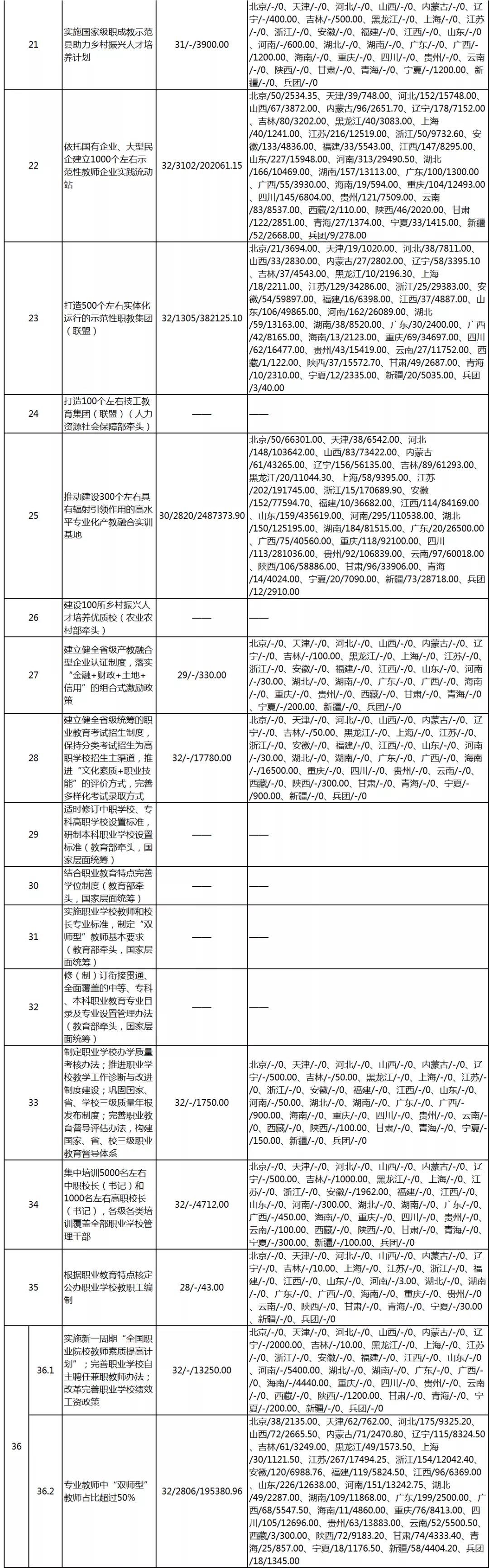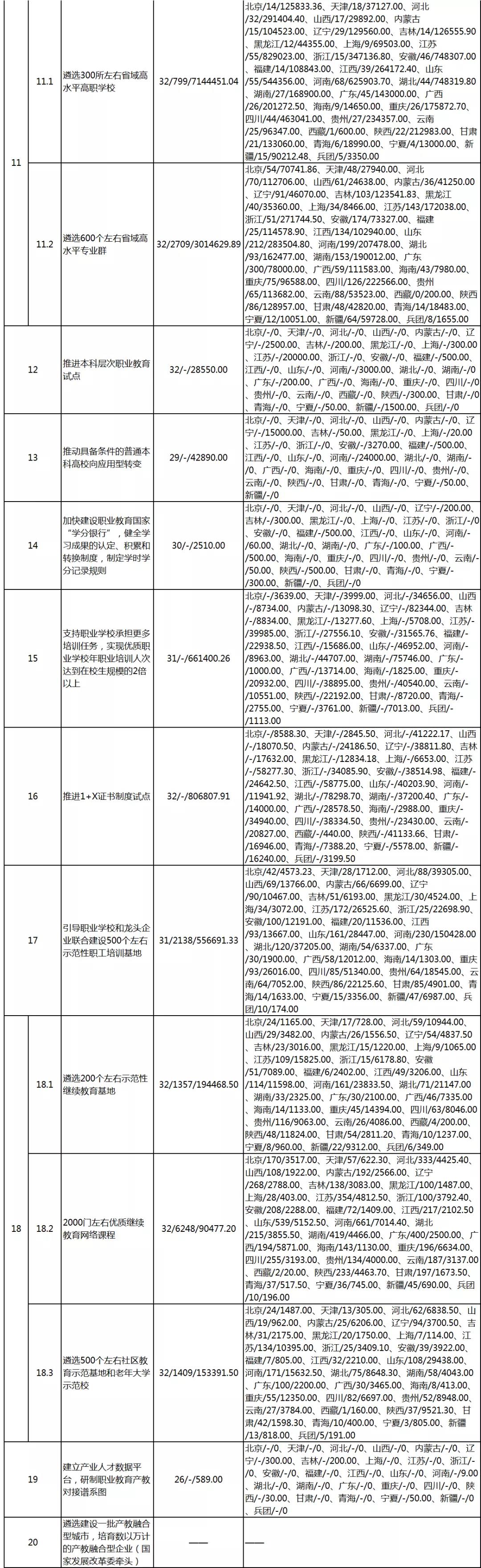 職業(yè)教育 提質培優 1月(yuè)14日,教育部職業(yè)教育與成人教育司發布《職業(yè)教育提質培優行動計劃(2020—2023年(nián))》任務(項目)承接情況的通(tōng)知,根據《關于承接〈職業(yè)教育提質培優行動計劃(2020—2023年(nián))〉任務(項目)的通(tōng)知》(教職成司函〔2020〕32号)要求,各省級教育行政部門(mén)積極組織申報(bào),确定了本地拟承接的任務(項目)數量、承接單位和支持經費(fèi)。 統計數據顯示,32個(gè)省份(含新疆生(shēng)産建設兵團)預計總投入經費(fèi)共計3074.53億元。經費(fèi)來源包括學校自(zì)籌、行業(yè)企業(yè)投入、舉辦方投入、地市(shì)縣投入、省财政投入五部分,其中,學校自(zì)籌預計投入1198.49億元、行業(yè)企業(yè)預計投入281.63億元、舉辦方(非财政供養的舉辦方)預計投入193.97億元、地市(shì)縣級财政預計投入985.04億元、省級财政預計投入415.40億元。 從(cóng)各省經費(fèi)投入情況來看(kàn),共有13個(gè)省份預計經費(fèi)總投入突破百億大關,預計投入經費(fèi)最高(gāo)的5個(gè)省份分别是:山東(2822102.28萬元)、四川(2419348.7萬元)、江蘇(2252110.25萬元)、河南(nán)(2072872.02萬元)、安徽(2054593.82萬元)。 附通(tōng)知原文: 關于公布《職業(yè)教育提質培優行動計劃(2020—2023年(nián))》任務(項目)承接情況的通(tōng)知 教職成司函〔2021〕1号 各省、自(zì)治區、直轄市(shì)教育廳(教委),新疆生(shēng)産建設兵團教育局,有關單位: 根據《關于承接〈職業(yè)教育提質培優行動計劃(2020—2023年(nián))〉任務(項目)的通(tōng)知》(教職成司函〔2020〕32号)要求,各省級教育行政部門(mén)積極組織申報(bào),确定了本地拟承接的任務(項目)數量、承接單位和支持經費(fèi)。現将各地承接情況予以公布,詳見(jiàn)附件(jiàn)1、附件(jiàn)2。建設期内,各地承接的任務(項目)原則上(shàng)不作調整,确需調整的須由省級教育行政部門(mén)函報(bào)我司備案。 2021年(nián)起,各地須在每年(nián)12月(yuè)31日前,按照(zhào)有關要求在“職業(yè)教育提質培優行動計劃任務(項目)管理平台”填報(bào)年(nián)度工(gōng)作進展及相(xiàng)關績效數據。我部對各地執行情況開(kāi)展評價,适時發布績效評價報(bào)告,并作為(wèi)考核省級政府履行教育職責和遴選國(guó)家新一(yī)輪重大改革試點項目的重要參考。2024年(nián)初,我部将根據各地建設成效,對任務(項目)開(kāi)展綜合評價,并對有關項目進行認定。 請各地将《職業(yè)教育提質培優行動計劃(2020—2023年(nián))》與“十四五”事(shì)業(yè)發展同規劃、同部署、同考核,加強省級統籌,加大政策和資金保障,指導各承接單位積極開(kāi)展建設工(gōng)作,确保承接任務(項目)落地見(jiàn)效。 附件(jiàn):1.分省承接任務(項目)數量彙總表 2.分任務(項目)承接省份一(yī)覽表 教育部職業(yè)教育與成人教育司 2021年(nián)1月(yuè)5日