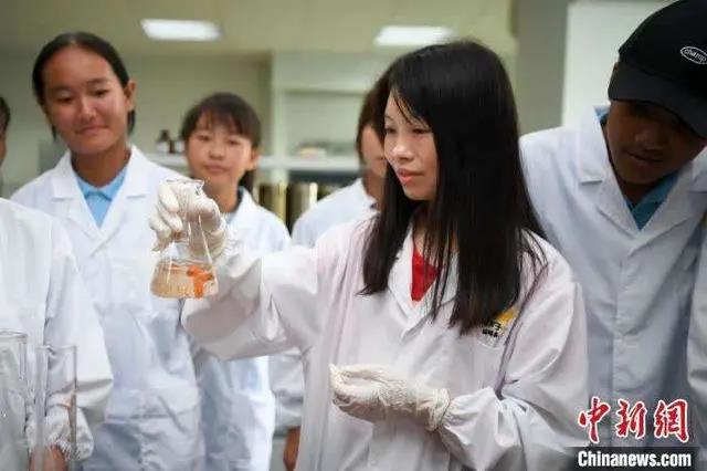 老師(shī)手持培養皿教學生(shēng)觀察辣條菌落。(上(shàng)圖皆為(wèi)楊華峰 攝)